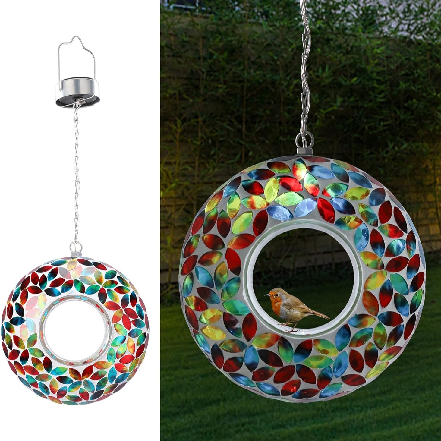 VCUTEKA Comedouro Solar de Mosaico para Pássaros – Beleza, Luz e Natureza em seu Jardim