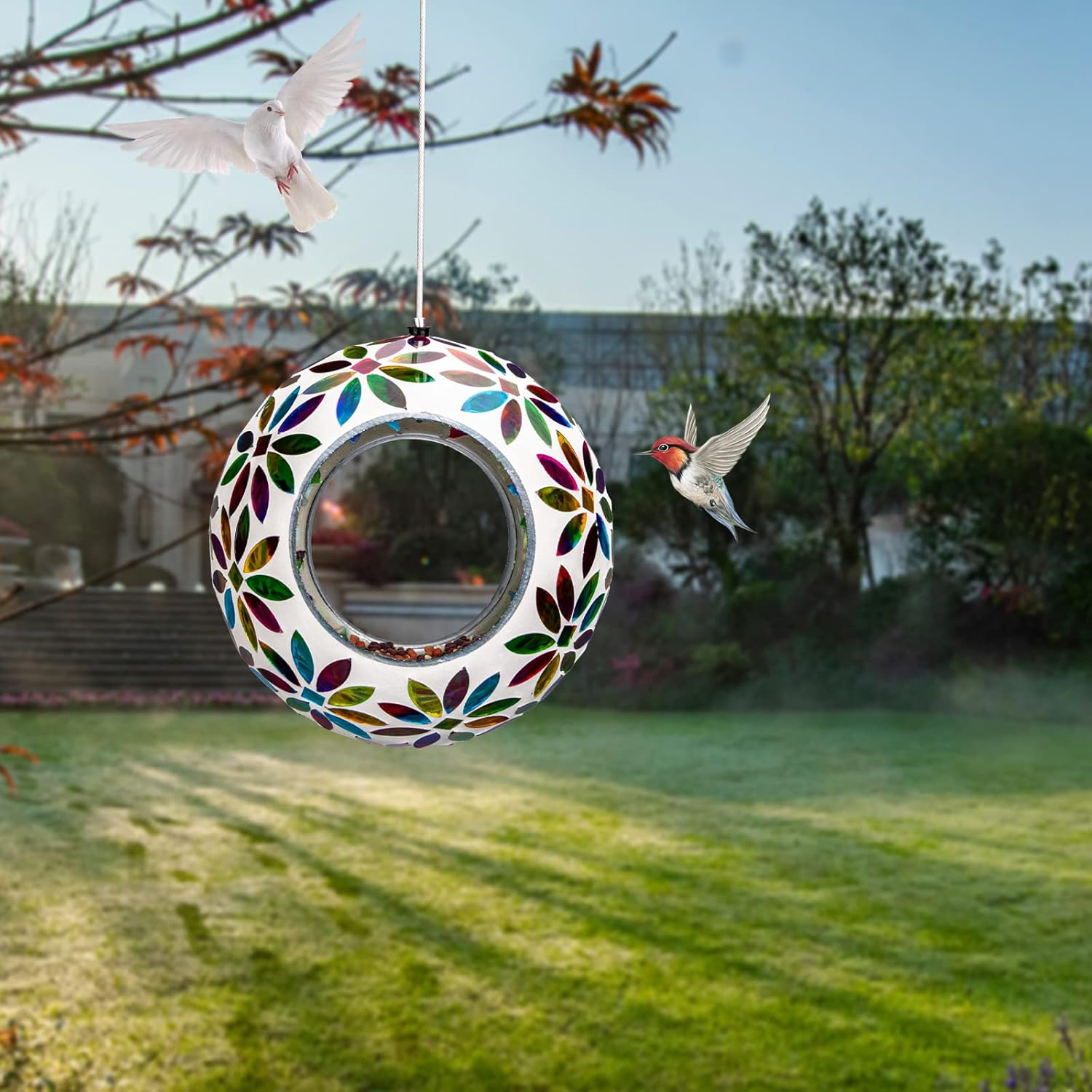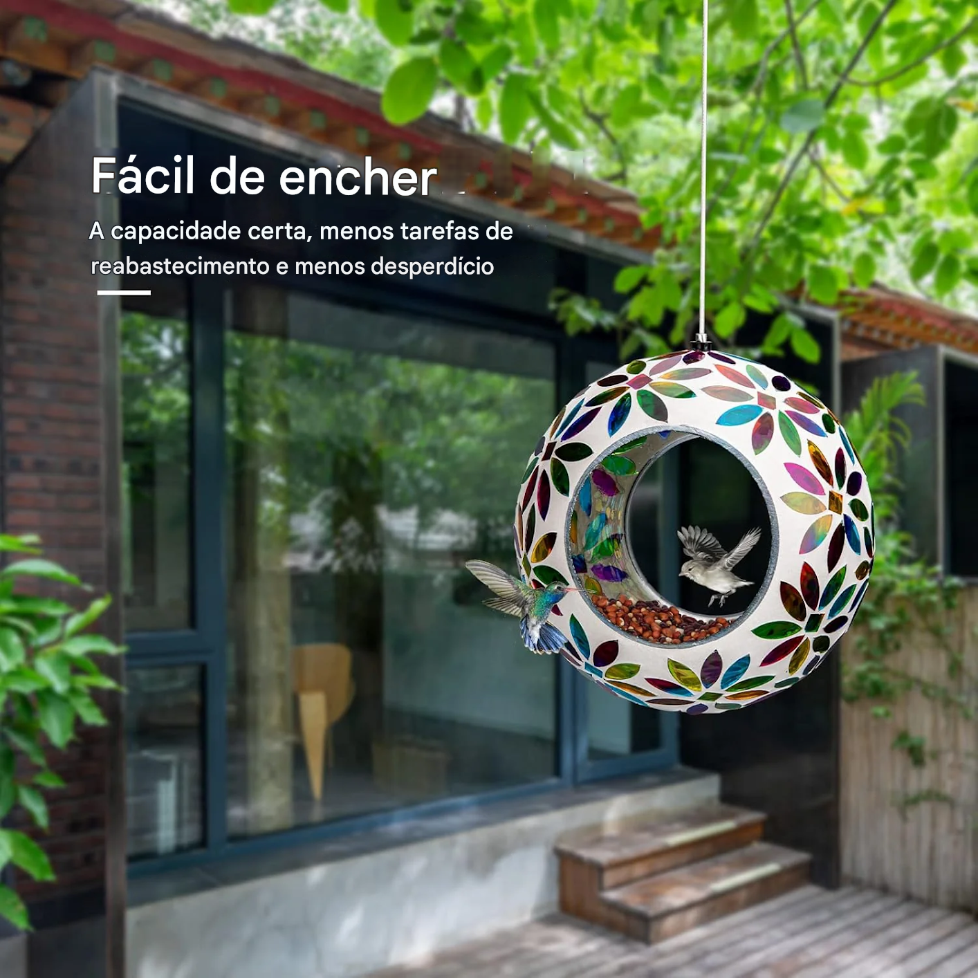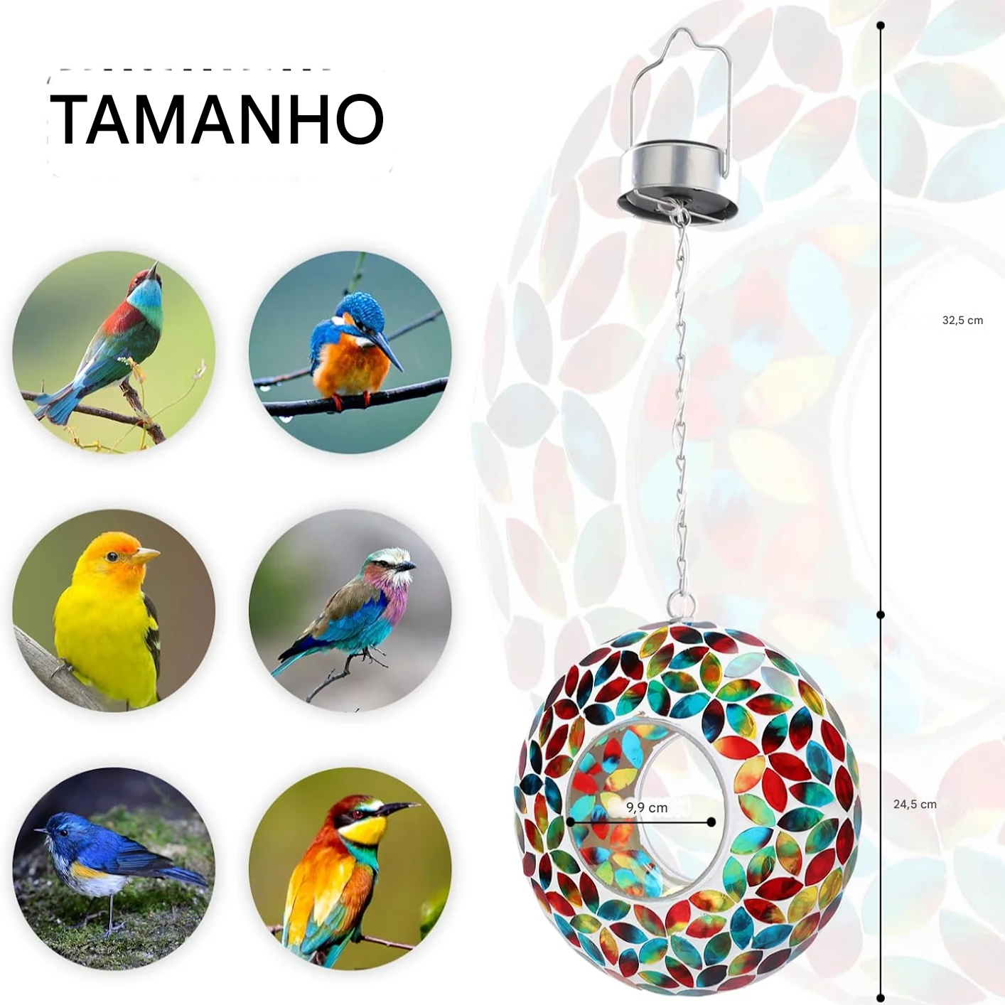 Comedouros para Granívoros Redondo em Vidro Mosaico com Luz de Painel Solar