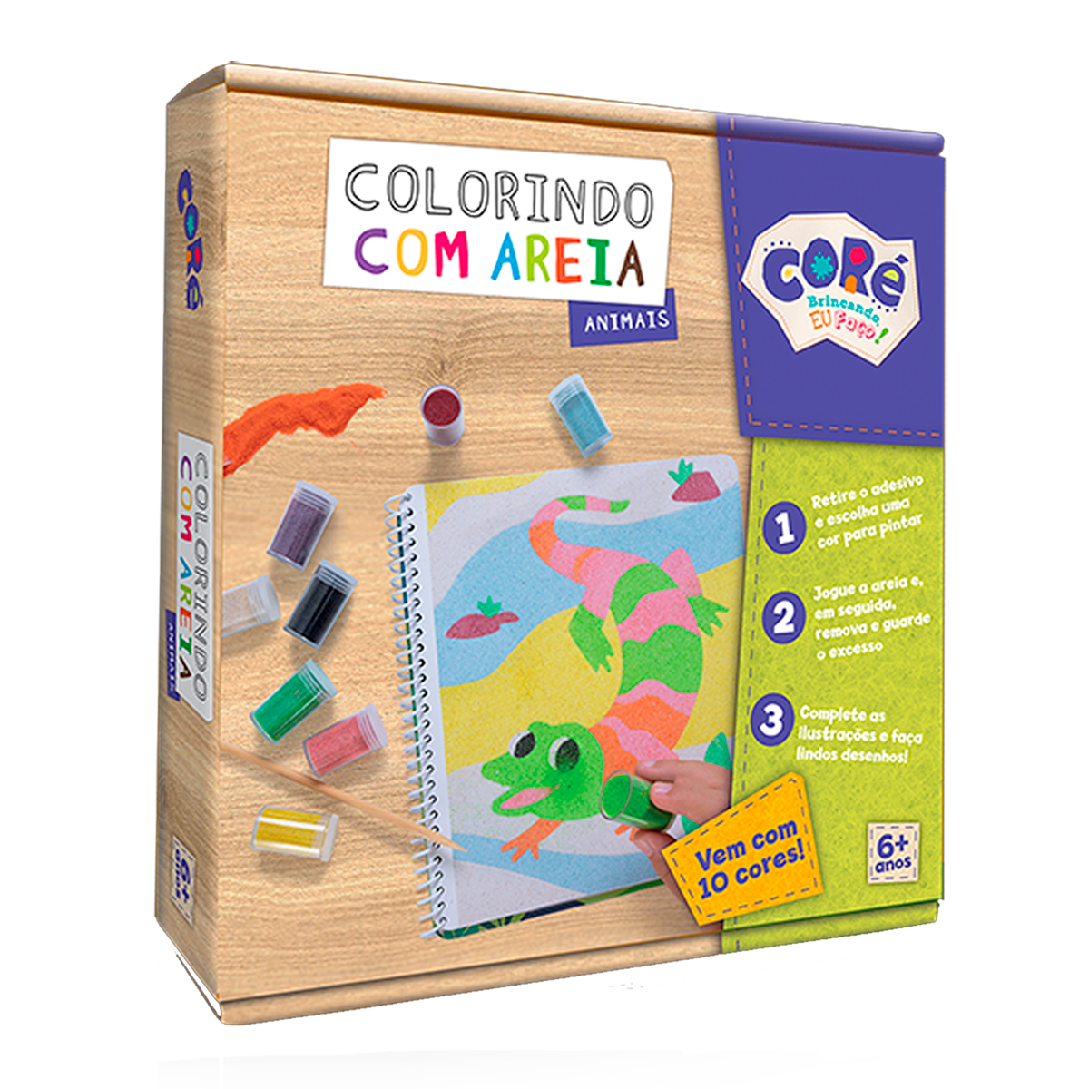 Descubra uma maneira mais divertida para colorir! Com este livro de atividades, basta jogar a areia sobre o papel adesivo para que os animais ganhem cor e uma "texturinha" incrível. É uma atividade sensorial que estimula a criatividade e a coordenação, proporcionando horas de diversão sem bagunça.