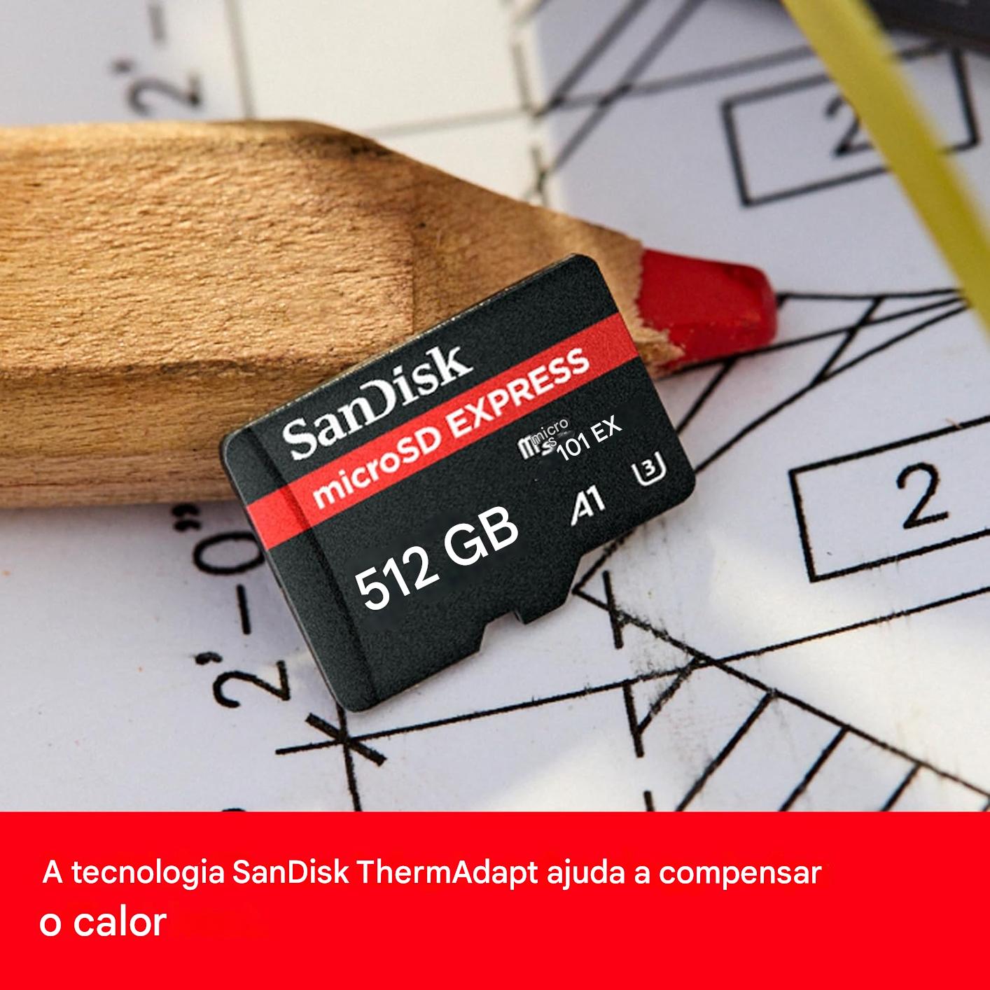 Liberte seu potencial criativo e leve suas experiências digitais para o futuro com a SanDisk microSD Express, o cartão de memória de nova geração para quem não se contenta. Com interface PCIe Gen 3 NVMe, oferece um desempenho comparável aos SSDs portáteis, até 4.4 vezes mais rápido que as microSD UHS-I, e pronta para dispositivos de próxima geração como o Nintendo Switch 2, câmeras de ação, drones e muito mais. Projetada com SanDisk ThermAdapt para um controle térmico inteligente, este cartão permite capturar vídeo até 5.3K hoje e estar preparado para 8K no futuro. Além disso, sua durabilidade extrema acompanha você em qualquer aventura.