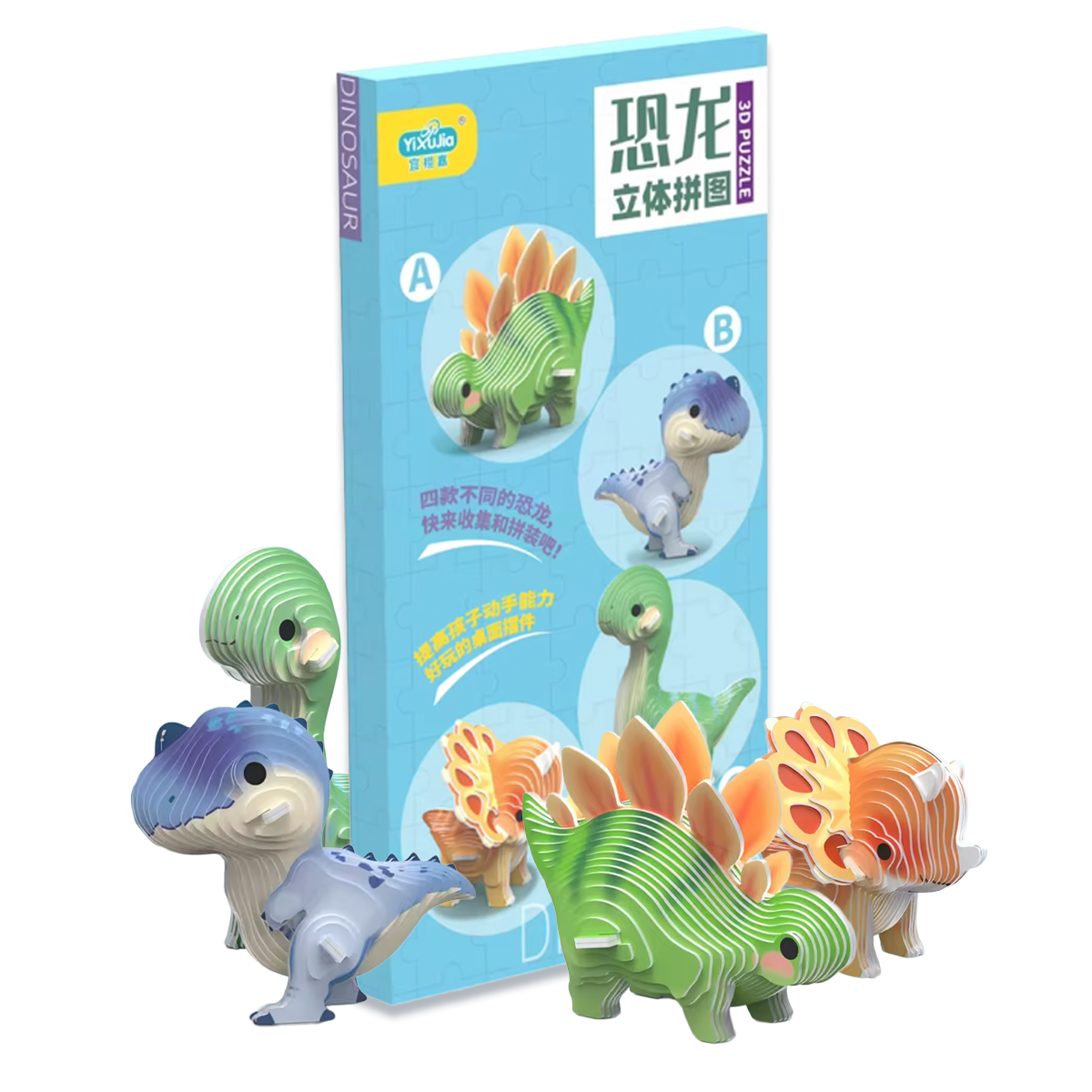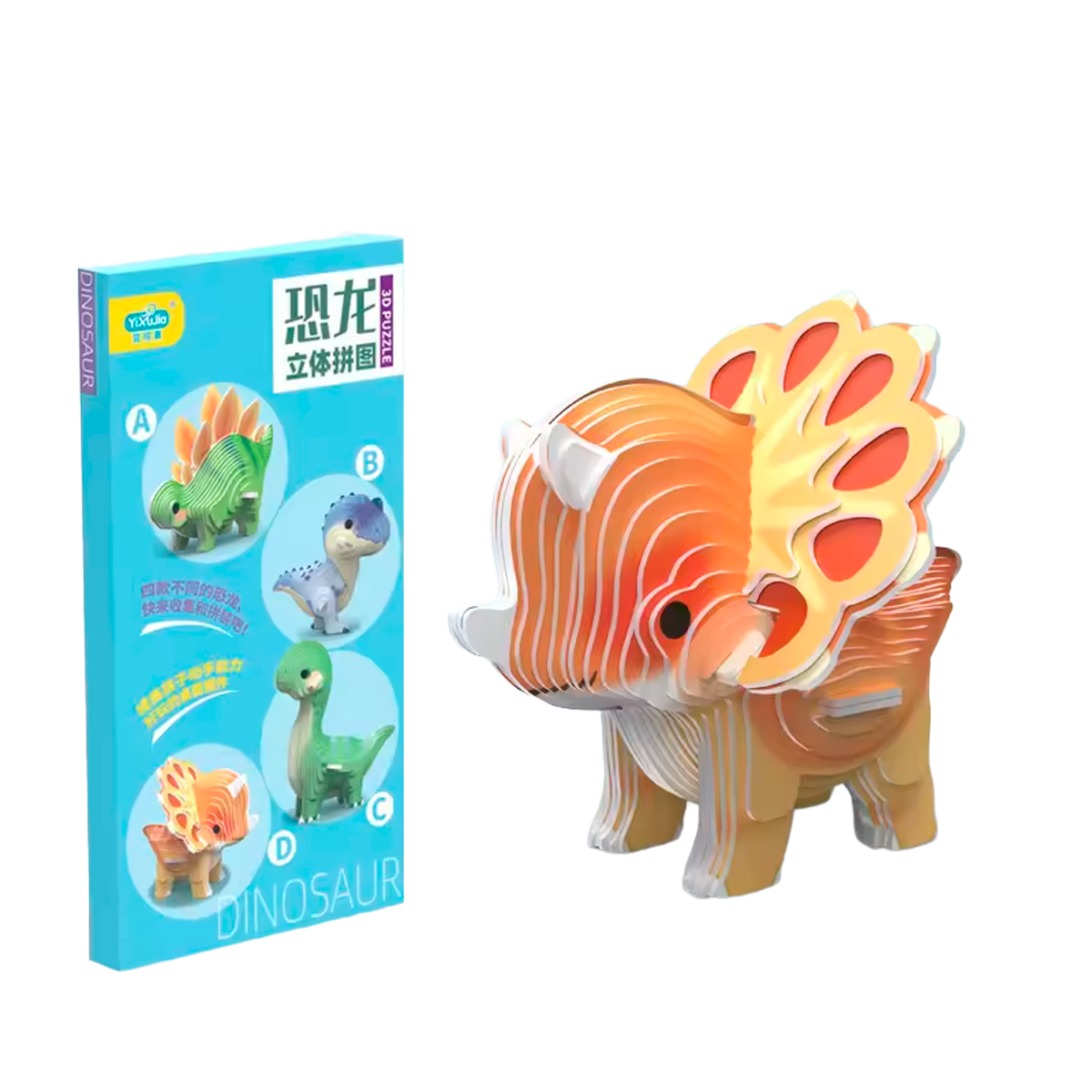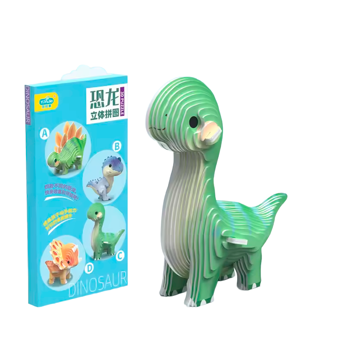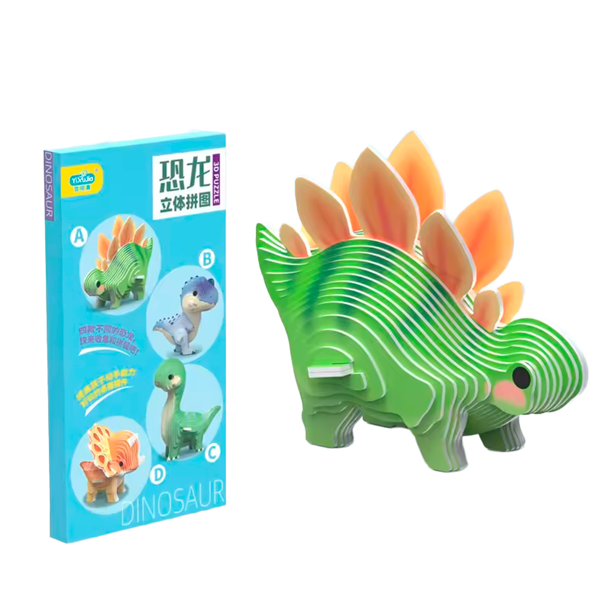 Este quebra-cabeça 3D permite que as crianças montem um dos quatro dinossauros disponíveis: Estegossauro, Tiranossauro Rex, Diplodoco ou Tricerátopo. Cada modelo é projetado com detalhes realistas, oferecendo um desafio divertido e educativo que desenvolve habilidades motoras e criatividade.