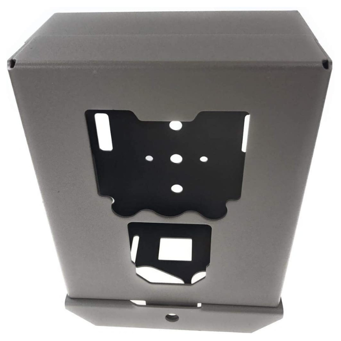 A Caixa de Segurança é fabricada com construção totalmente em aço para garantir um encaixe exato da sua câmera. Permite mover a câmera para dentro e para fora mantendo sempre o mesmo alinhamento, diferente dos designs convencionais. Seu revestimento em pó com pintura camuflada não apenas protege seu equipamento dos elementos naturais, mas também serve como elemento dissuasor contra roubos e animais.
