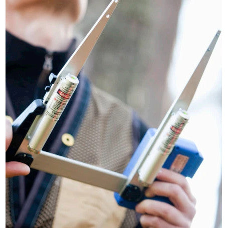 Aponte os dois feixes de laser Gator Eyes perfeitamente alinhados, simplesmente abra as garras do calibrador até que os ponteiros laser de alta visibilidade estejam posicionados onde você precisa no caule.