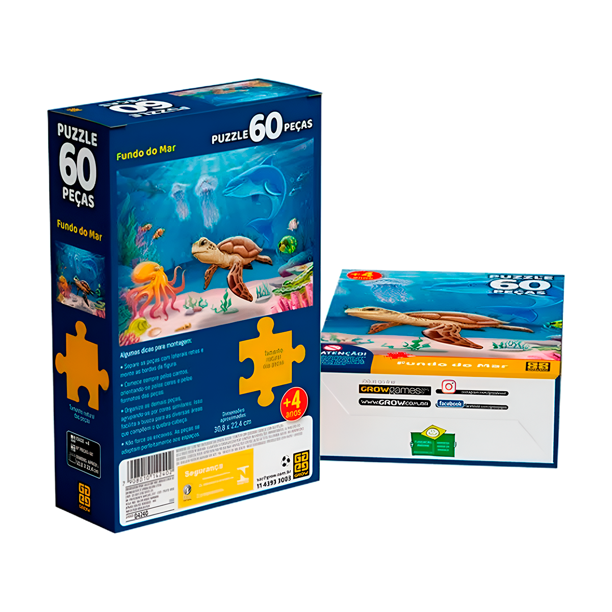 Agora você pode ter um lindo quebra-cabeça com 60 peças, para você encaixar uma a uma até formar a imagem do Fundo do Mar. Mais que um passatempo divertido, os quebra-cabeças desenvolvem o raciocínio, relaxam e se transformam num autêntico hobby para os pequenos.