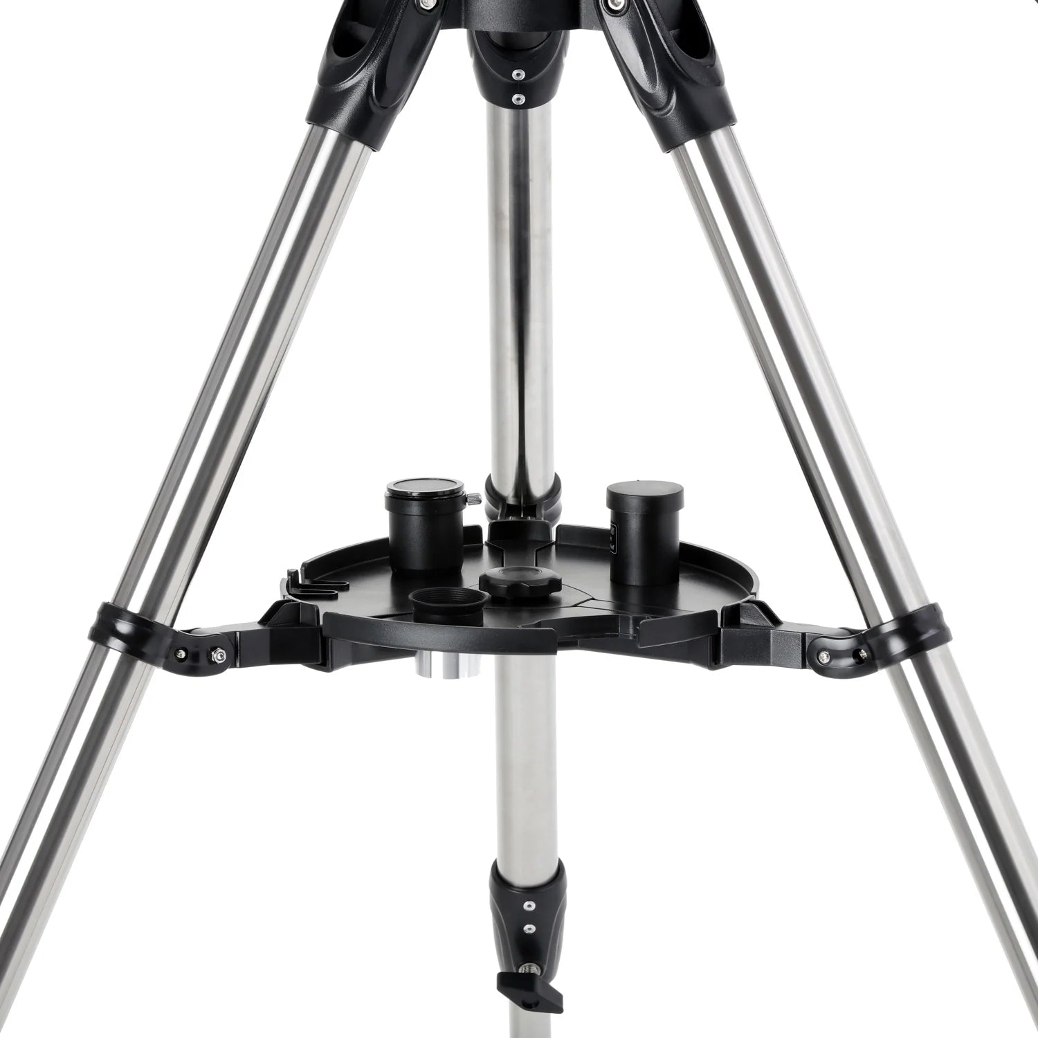 A montagem equatorial manual incluída possui cabos de controlo de câmara lenta que facilitam o acompanhamento de objetos mesmo com luvas, ao mesmo tempo que minimizam as vibrações causadas pela manipulação da montagem com as mãos; e indicadores claramente visíveis nos eixos de Ascensão Reta e Declinação. Um tripé de alumínio de altura ajustável completa o equipamento com uma bandeja para acessórios como oculares, filtros e luzes.